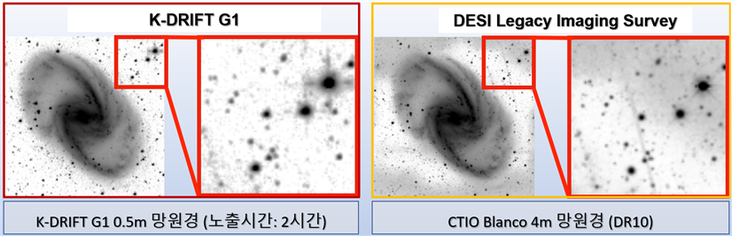 천문연 고종완 박사가 이끄는 케이-드리프트(K-DRIFT) 연구팀은 초극미광 탐사 효율을 기존 대비 약 20배 향상시킨 0.5m급 케이-드리프트(K-DRIFT) 1세대를 성공적으로 개발했다. 해당 망원경은 2025년 6월 보현산천문대에서 시험 관측을 통해 성능을 확인했으며, 최근 칠레 엘 사우스(El Sauce) 천문대에 설치되어 첫 영상을 획득하고 이를 공개했다.