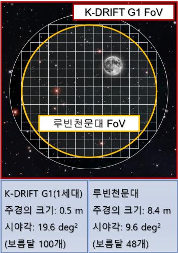 이번 관측에 성공한 케이-드리프트(K-DRIFT) 1세대 망원경은 구경 0.5미터의 소형 광학망원경으로, 시야각이 루빈 천문대(Vera C. Rubin Observatory, 구경 8.4m) 망원경보다 2배 이상 넓으며, 보름달 100개 면적을 한 번에 관측할 수 있는 광시야 능력과 초극미광 특화 기술을 결합해, 루빈 천문대 대비 약 20배 높은 탐사 효율을 갖는다.